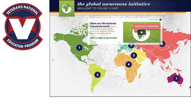 VNEP’s Global Awareness Initiative Map is a robust interactive tool that helps students gain an understanding of a selected country, its people, their culture and their history and to learn the reasons the U.S. went to war and many of the accomplishments of the “New Greatest Generation”